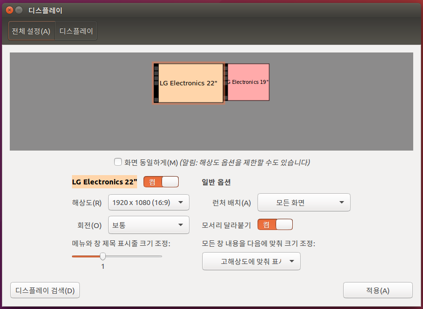 2. 수정하고자 하는 내용(모니터 위치 등) 변경 후 적용 클릭